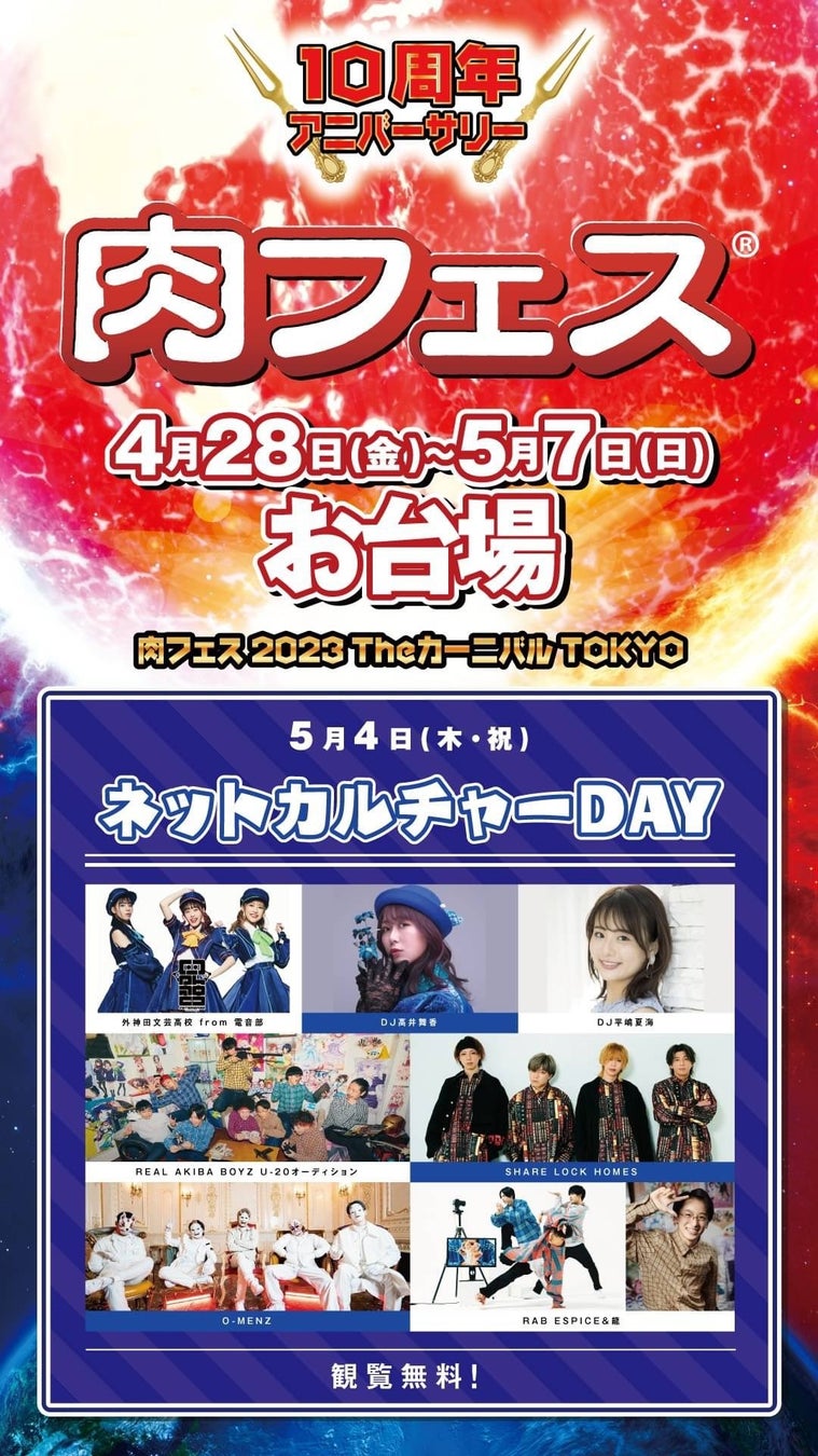 REAL AKIBA BOYZがプロデュースする新ユニットオーディション最終審査が肉フェス 2023 Theカーニバル TOKYO 5/4 (金)にて開催!fhana佐藤純一、福原慶匡など特別審査員に