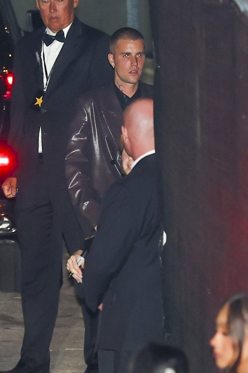 2026年3月15日、ジャスティン・ビーバーは毎年恒例のアカデミー賞 アフターパーティーにて、GUCCI PRIMAVERAコレクションからウールブレンド ラミネート ダブルブレスト ジャケットに、ダークブルーのシルクシャツ、ブラックのシルクパンツを纏って登場しました。