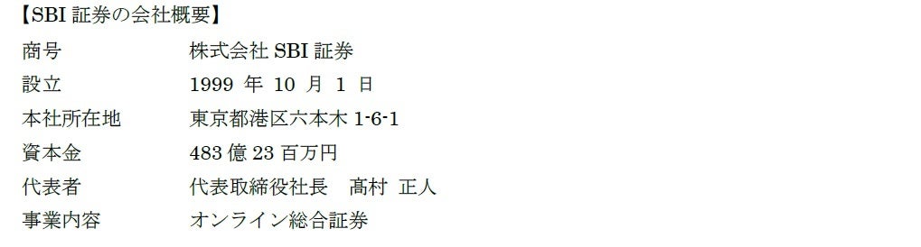 所属金融商品取引業者:株式会社SBI 証券