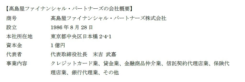 【髙島屋ファイナンシャル・パートナーズの会社概要】