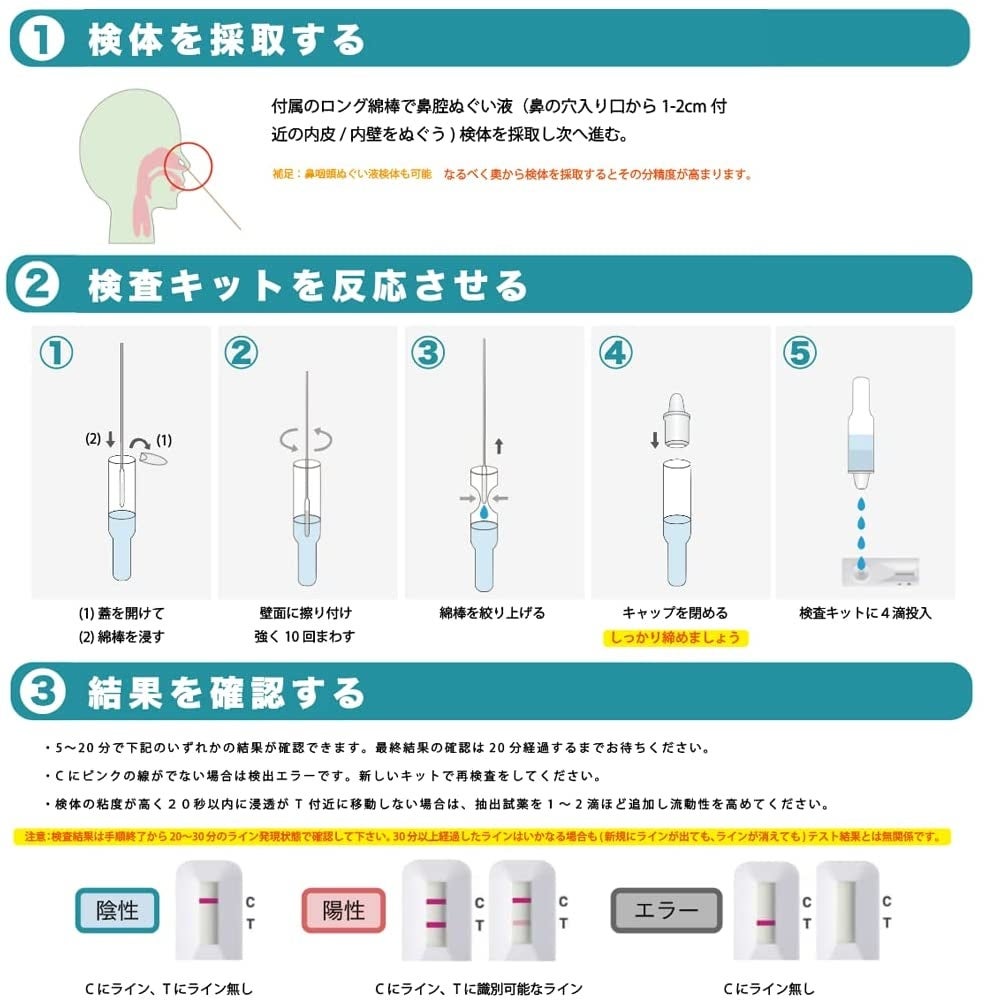 国内10000社以上の導入実績有り!TBS「NEWS23」でも紹介された「鼻腔ぬぐい液(鼻の入り口から1-2cm付近内皮内壁をぬぐって採取))」等を用いて新型コロナウィルスの抗原を検出するキット!