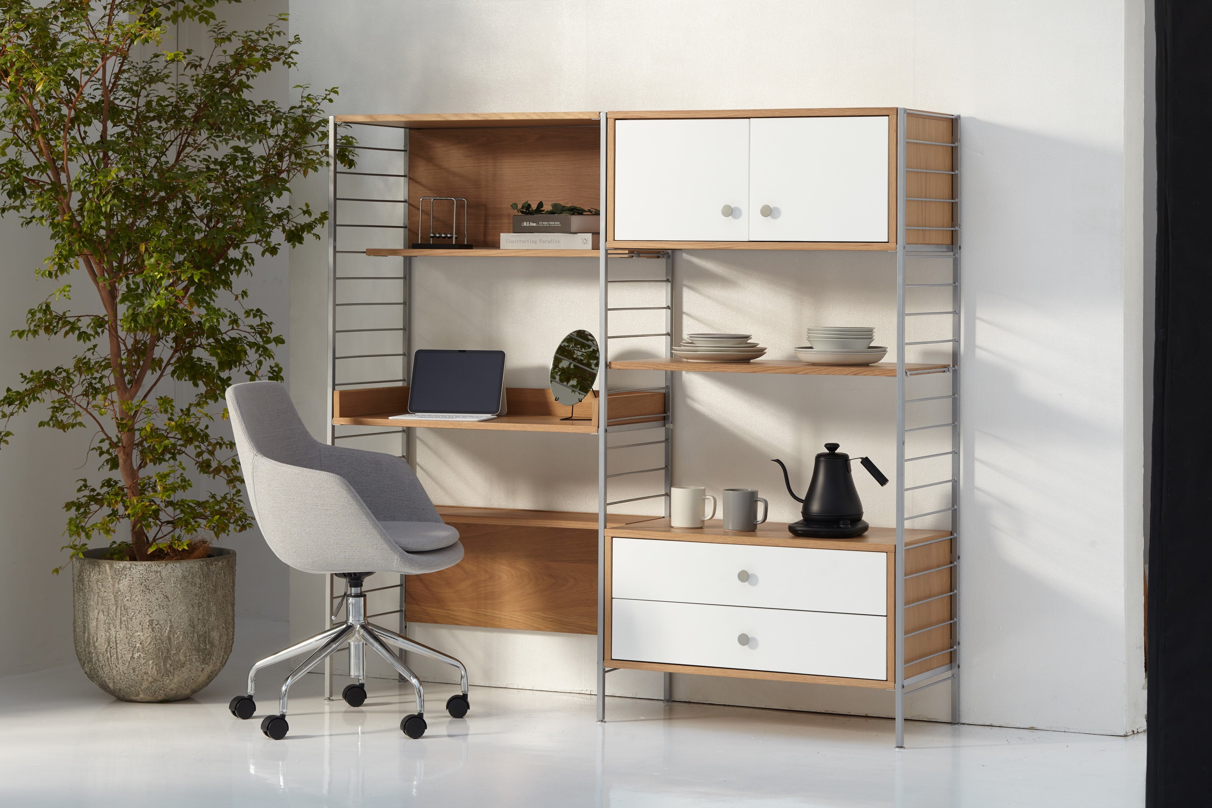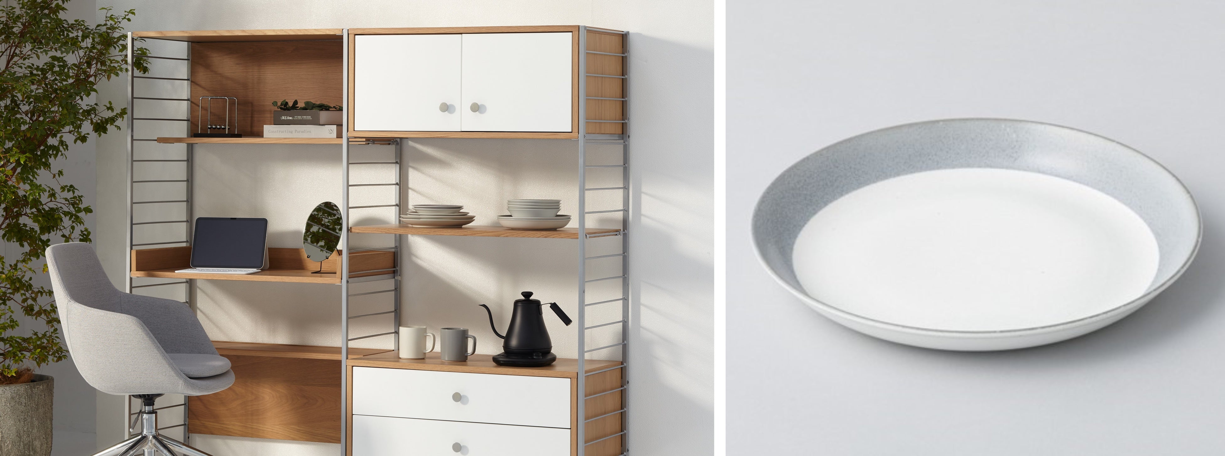 23cmディーププレート ASM GY(Living in Comfort) 左写真右キャビネット上段右下・右写真共通