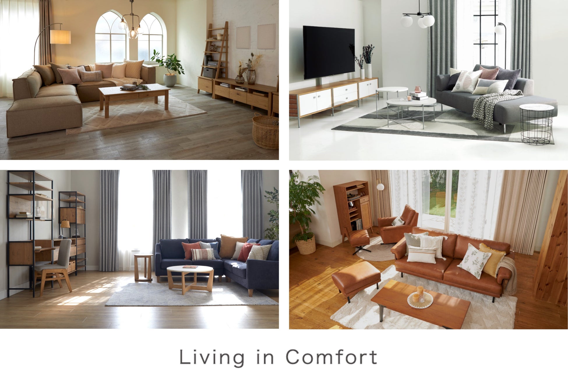 「Living in Comfort」では、それぞれ異なるライフスタイルで心地よさを叶える4つのプランをご用意。これからをずっと一緒に暮らしたくなる家具・インテリアを、お近くの店舗またはニトリネットで、ぜひご覧ください。