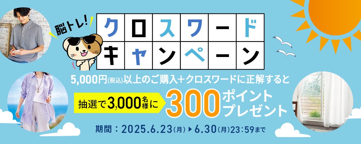 解いて当ててポイントゲット!セシールが夏のクロスワードキャンペーンを開催。