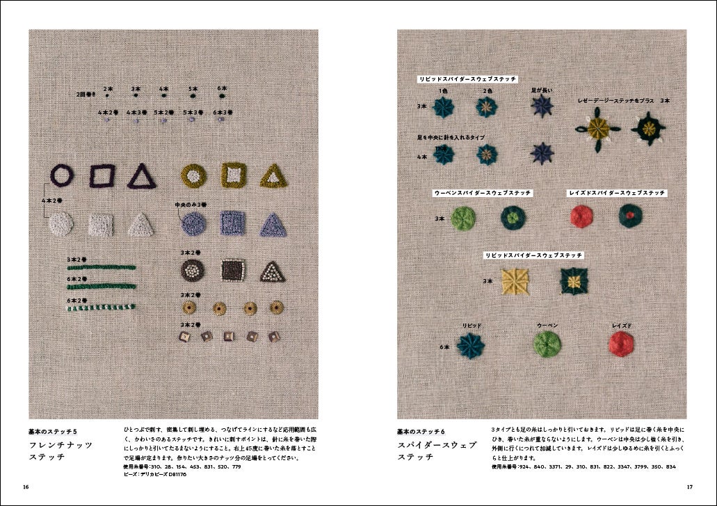 特徴的なステッチ、作品に使われているステッチは写真で詳しくプロセス解説。