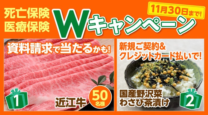 【SBIいきいき少短】死亡保険・医療保険の資料請求で「近江牛」が抽選で当たる!~クレジットカード払いの新規ご契約でもれなく「国産野沢菜わさび茶漬け」をプレゼント~