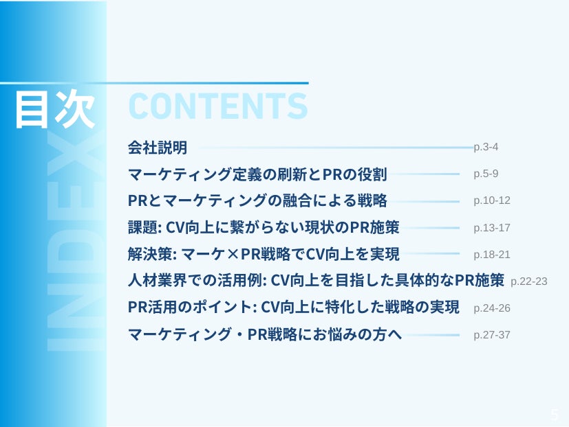 本レポートでは、人材業界向けに新たなマーケティングの定義に対応し、マーケティングとPRを融合させることでCV(コンバージョン)の向上を実現する、戦略と解決策について紹介しています。