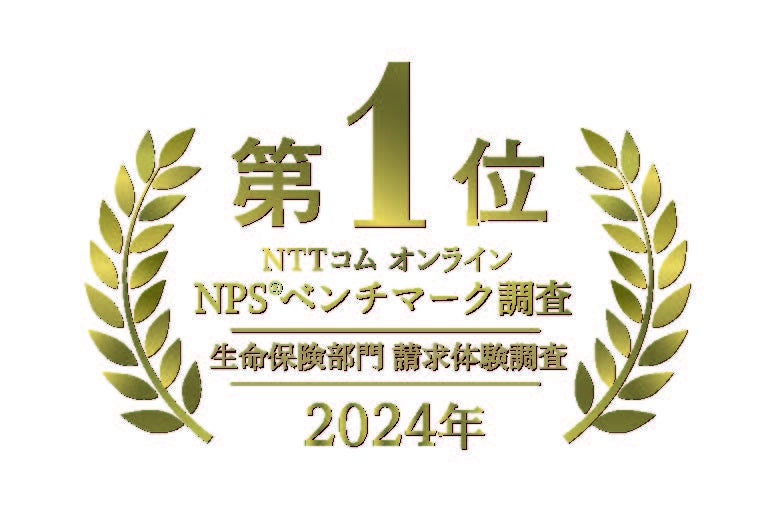 ーケティング・ソリューション株式会社(代表取締役社長:塚本 良江、以下「NTTコム オンライン」)が発表した「NTTコム オンラインNPS®ベンチマーク調査2024」の「生命保険部門 請求体験調査」「生命保険部門 アフターフォロー調査」の2部門において第1位の評価をいただきました。