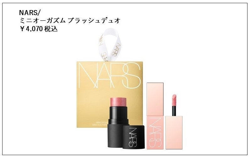 ベストセラーのNARSオーガズムコレクションより、「アフタグロー リキッドブラッシュ」「ザ マルティプル」の限定ミニサイズデュオが特別なホリデー版のメタリックオーナメントパッケージ入りで登場します。