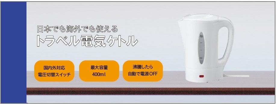 インテリア家電製品および、PCサプライ品の製造販売を手掛ける株式会社ヤザワコーポレーションは、トラベル電気ケトルを4月下旬頃に発売いたします。