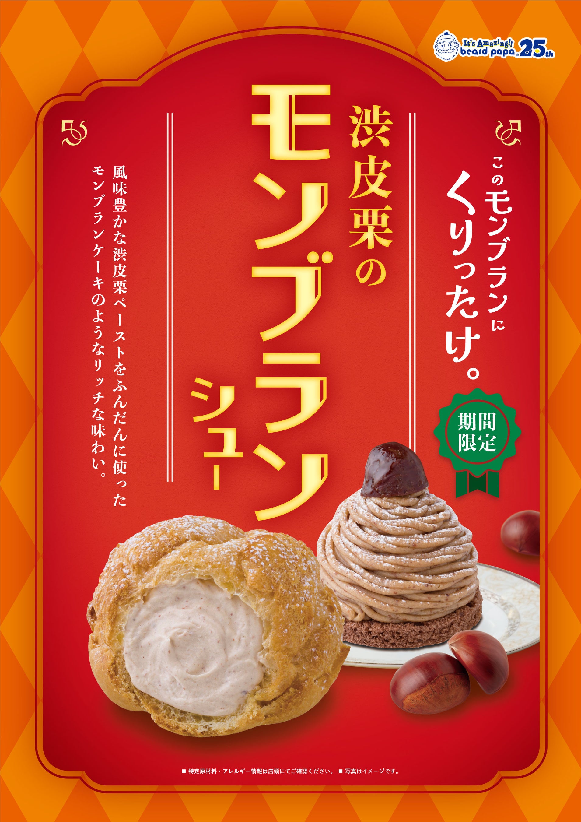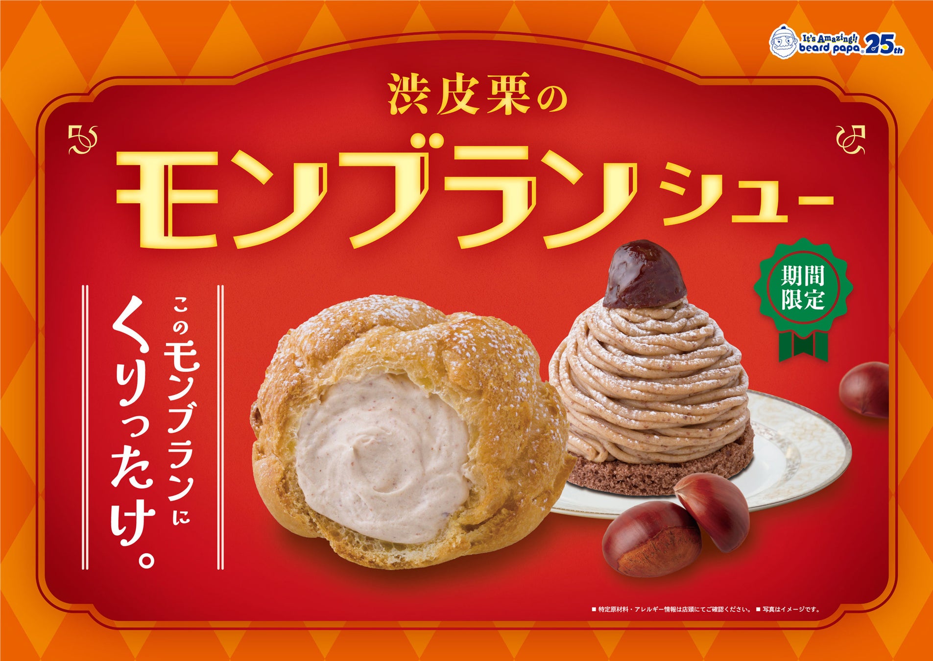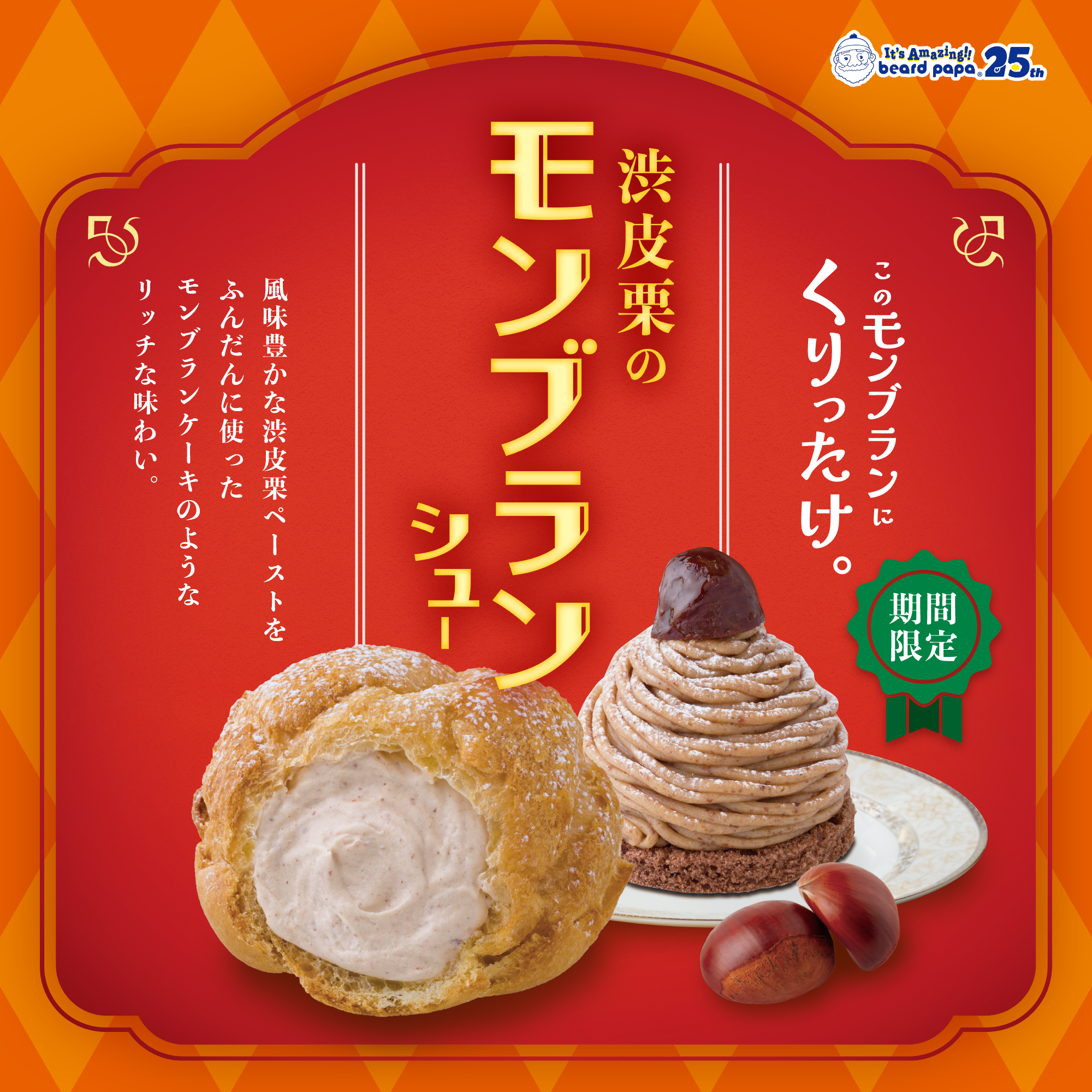 ビアードパパから、あなたを夢中にさせる秋の味覚“渋皮栗のモンブランシュー”が登場!毎年人気の本格的な味わいに、あなたも「くりったけ。」