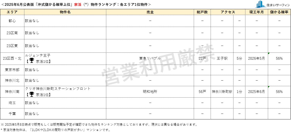 [住まいサーフィン]資産性の保たれやすいマンションがわかる首都圏エリア別「沖式儲かる確率上位マンションランキング」2025年6月版公表