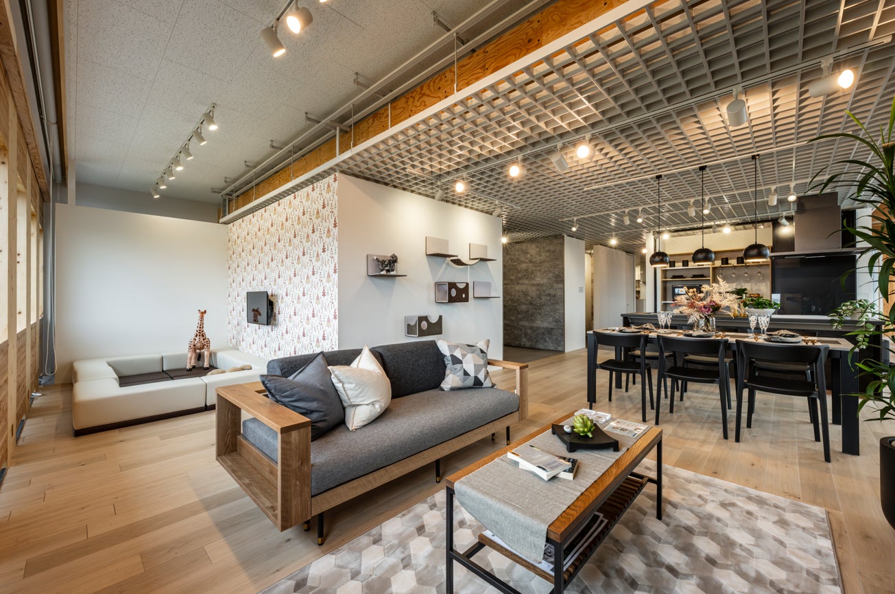 一般的な住宅展示場やモデルハウスはお客様の目を惹くために、広々とした間取りや豪華な仕様でつくられることがほとんどです。一方、このほどオープンした“間取り”と“デザイン”のショールーム「ライフデザインミュージアム(完全予約制)」は、250㎡超のスペースにテイストやコンセプトが異なる3つのLDK(リビング・ダイニング・キッチン)空間を設えており、「実邸に近いリアルサイズで、最新トレンドに合った取り入れやすい仕様の展示」をテーマとしています。AQ Groupオリジナル住宅設備の展示に加え、実邸を想定した使いやすいサイズの間取り、動線が体感できるスペース。あくまで現実的な予算と空間で実現させるため「コストパフォーマンス」や「スペースパフォーマンス」の工夫が随所に見られる、新しい視点のショールームとなっています。また、キッチンやトイレ、洗面台などの水回り設備などは数カ月に1度のペースで入れ替えていく予定。常に最新トレンドを提供していく拠点となります。