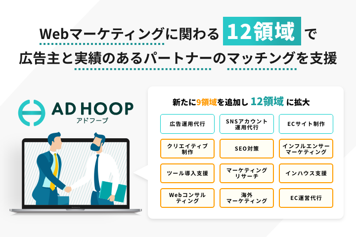 アドフープ、マッチング領域を12領域に拡大、Webマーケティング領域で実績のある最適なパートナー探しをサポート