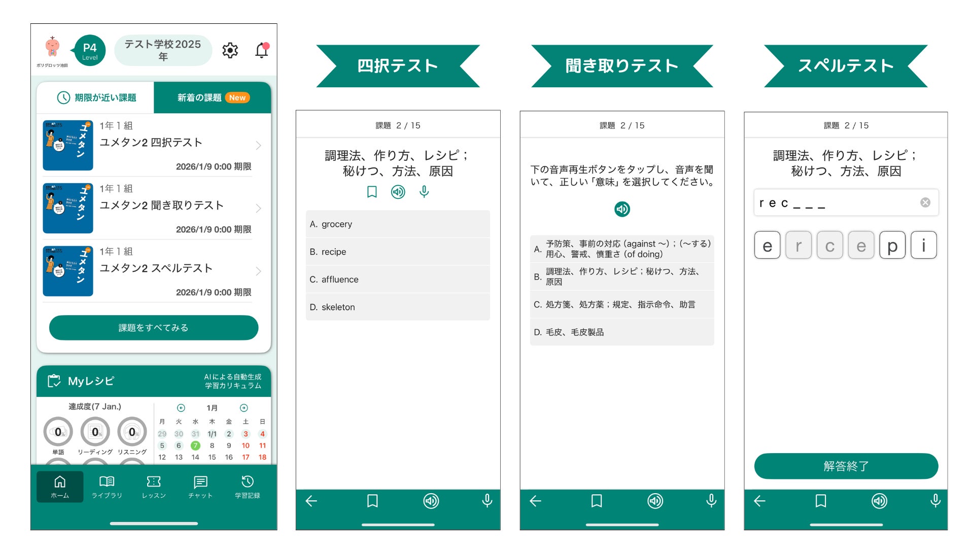 株式会社ポリグロッツ(本社:東京都新宿区、代表取締役:山口隼也)は、2026年度、教育機関向け英語学習プラットフォーム『レシピー for School』に、アルクの中高生向け単語帳のベストセラー「ユメタン」シリーズを搭載したことをお知らせします。