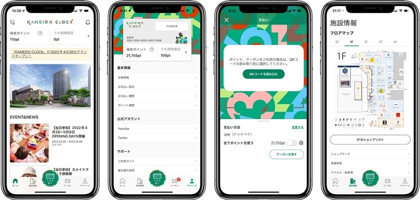 株式会社アイリッジ(本社:東京都港区、代表取締役社長:小田 健太郎、東京証券取引所マザーズ:3917、以下「アイリッジ」)は、野村不動産株式会社(本社:東京都新宿区、代表取締役社長:松尾 大作、以下「野村不動産」)が2022年4月28日に開業する大規模商業施設「カメイドクロック」(東京都江東区亀戸)のお客さま向けアプリ「カメクロアプリ」を開発支援したことを発表します。「カメクロアプリ」は施設開業に先駆け4月1日から提供開始し、野村不動産では同日よりアプリダウンロード先着1万名様を対象として、施設内の店舗で使える500円分の「カメクロポイント」プレゼントキャンペーンを実施します。