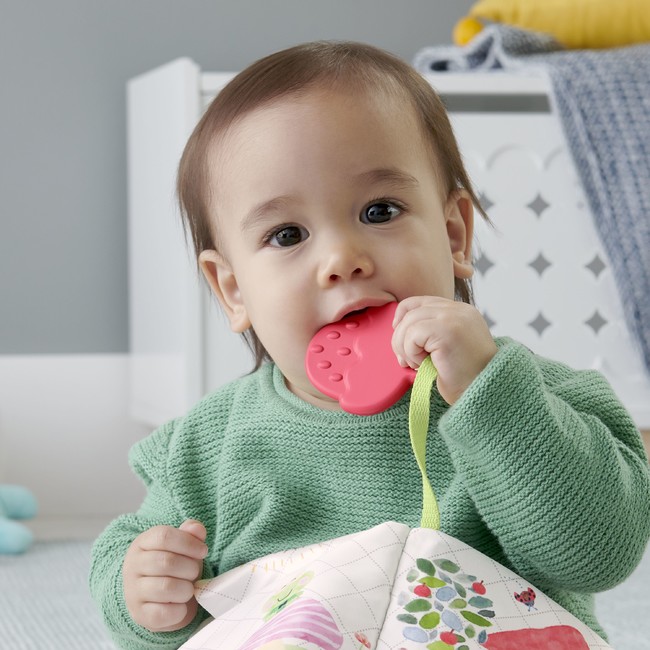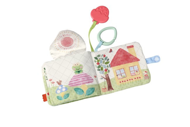 6つの指遊びが楽しめる、サンリオのキャラクターでいっぱいのふかふか布絵本です。ページをめくるごとにたくさんの発見があり、いちごの歯がためを各ページに移動させながら遊べます。カシャカシャ音やキュ!キュ!などの音も楽しむことができます。
