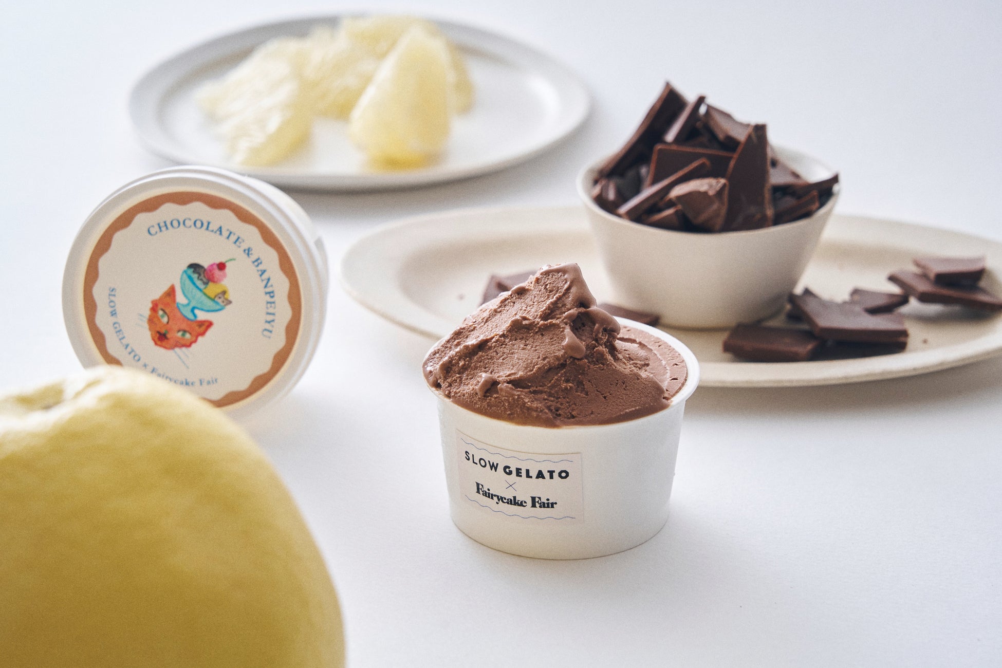 香り高いカカオマスを用いたリッチな風味に、熊本特産の特大柑橘・晩白柚(ばんぺいゆ)を隠し味にしたSLOW GELATOの定番チョコレートジェラート。隠れ晩白柚により、爽やかなやさしい酸味がほんのりと感じられ、コクがありながらもあっさりと食べられる上品なチョコレート味です。熊本でつくっているSLOW GELATOならでは味わい。