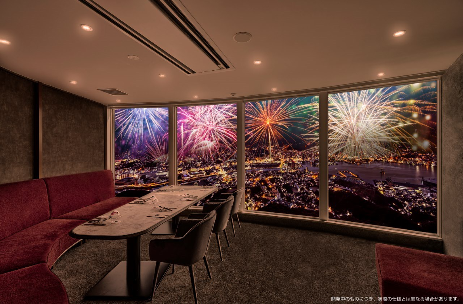 稲佐山山頂のレストランで『夜景×花火×食事』のマッピングショー好評開催中!