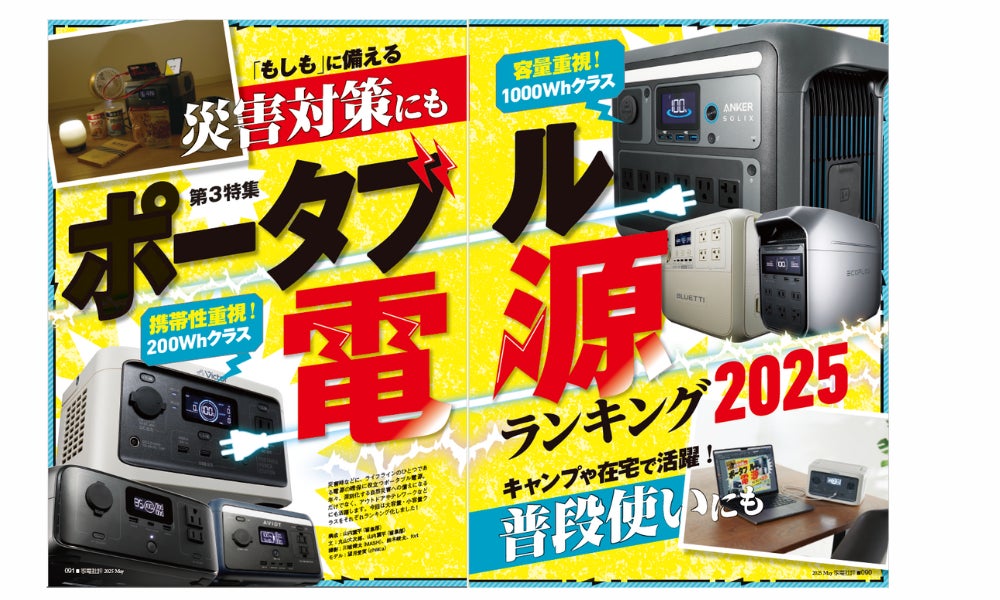 災害時などに、ライフラインのひとつである電源の確保に役立つポータブル電源。年々、深刻化する自然災害への備えになるだけでなく、アウトドアやテレワークなどにも活躍します。今回は自宅避難時に空調家電も動かせる1000Whクラスの容量の製品を集め、実容量や充電スピード、使い勝手などを検証しました。