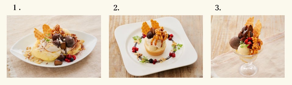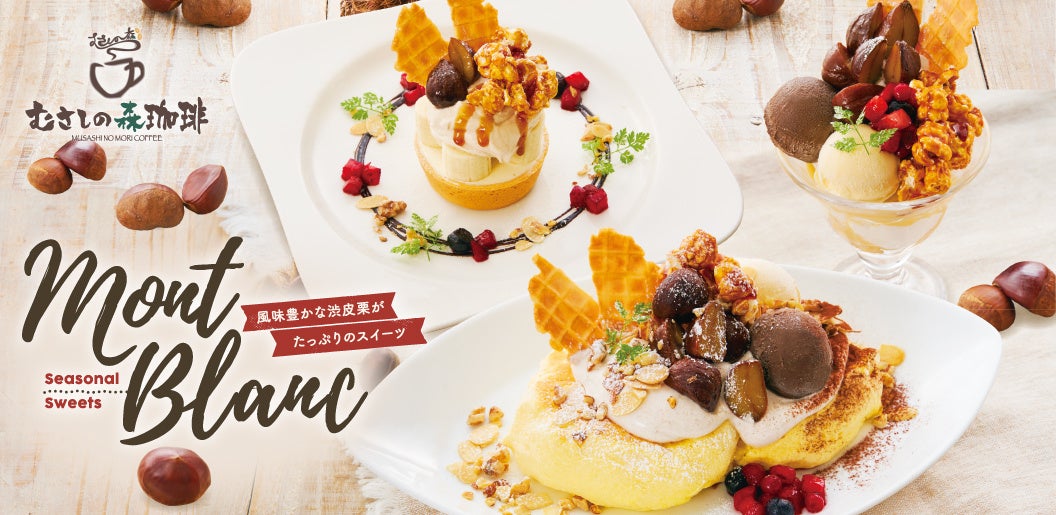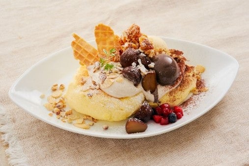 【むさしの森珈琲】新作!渋皮栗と自家製マロンホイップが主役のスイーツ3種~“人気No.1の特製パンケーキ”をモンブラン仕立てに~