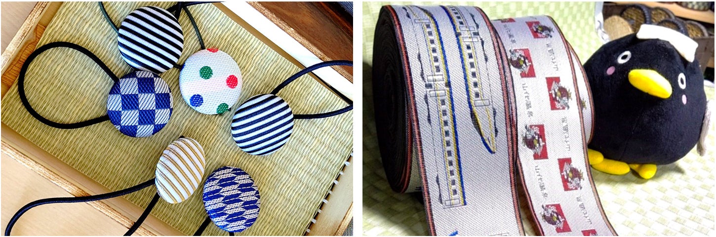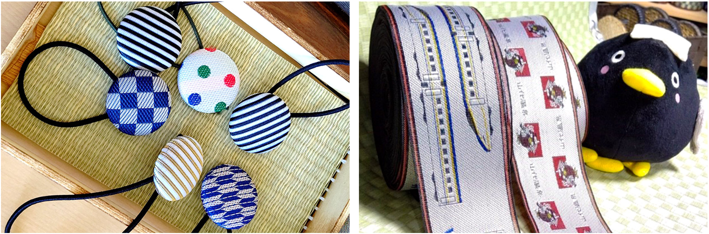 右:山代温泉のゆるキャラ「スパクロ」や、北陸新幹線柄の畳縁もあり、女性だけでなく男性やお子様も楽しめるワークショップはオンライン予約が可能なので、お出かけ前のチェックがお薦めです。