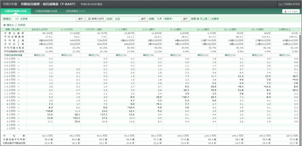 【令和5年版「役員報酬・役員退職金(Y-BAST)」の月額役員報酬分布表の画面】