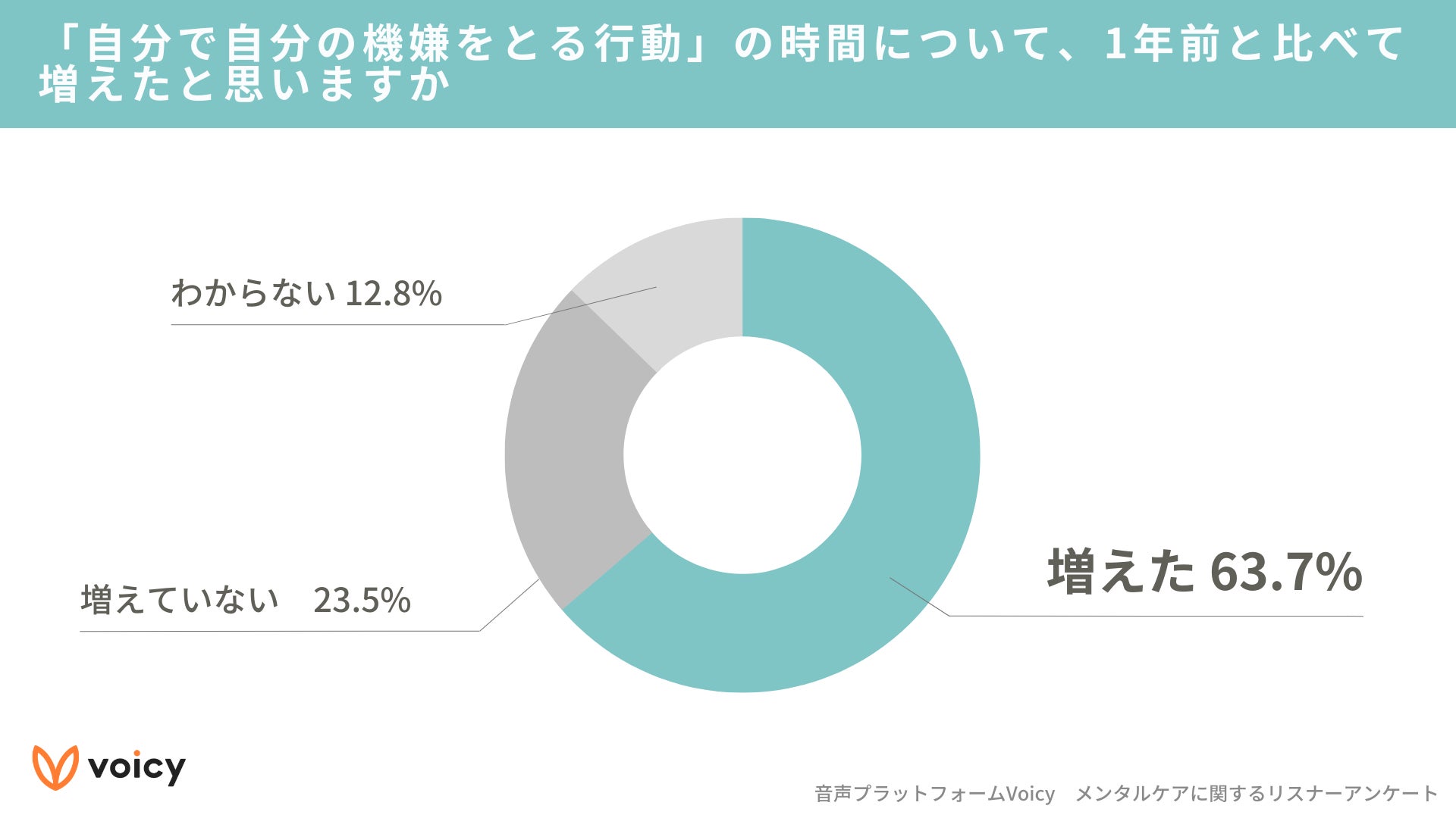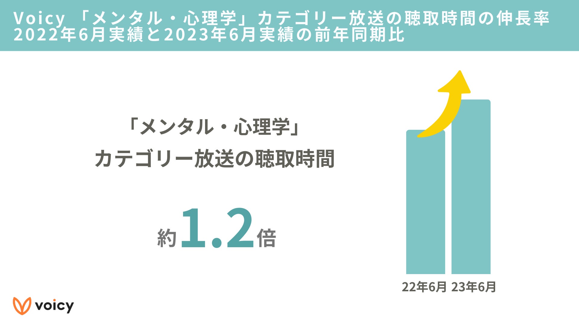 メンタルケアへの関心度や“ご自愛”需要の高さは、Voicyの聴取傾向にも見られ、「メンタル・心理学」ジャンルの聴取時間が昨年同時期に比べて約1.2倍となりました。