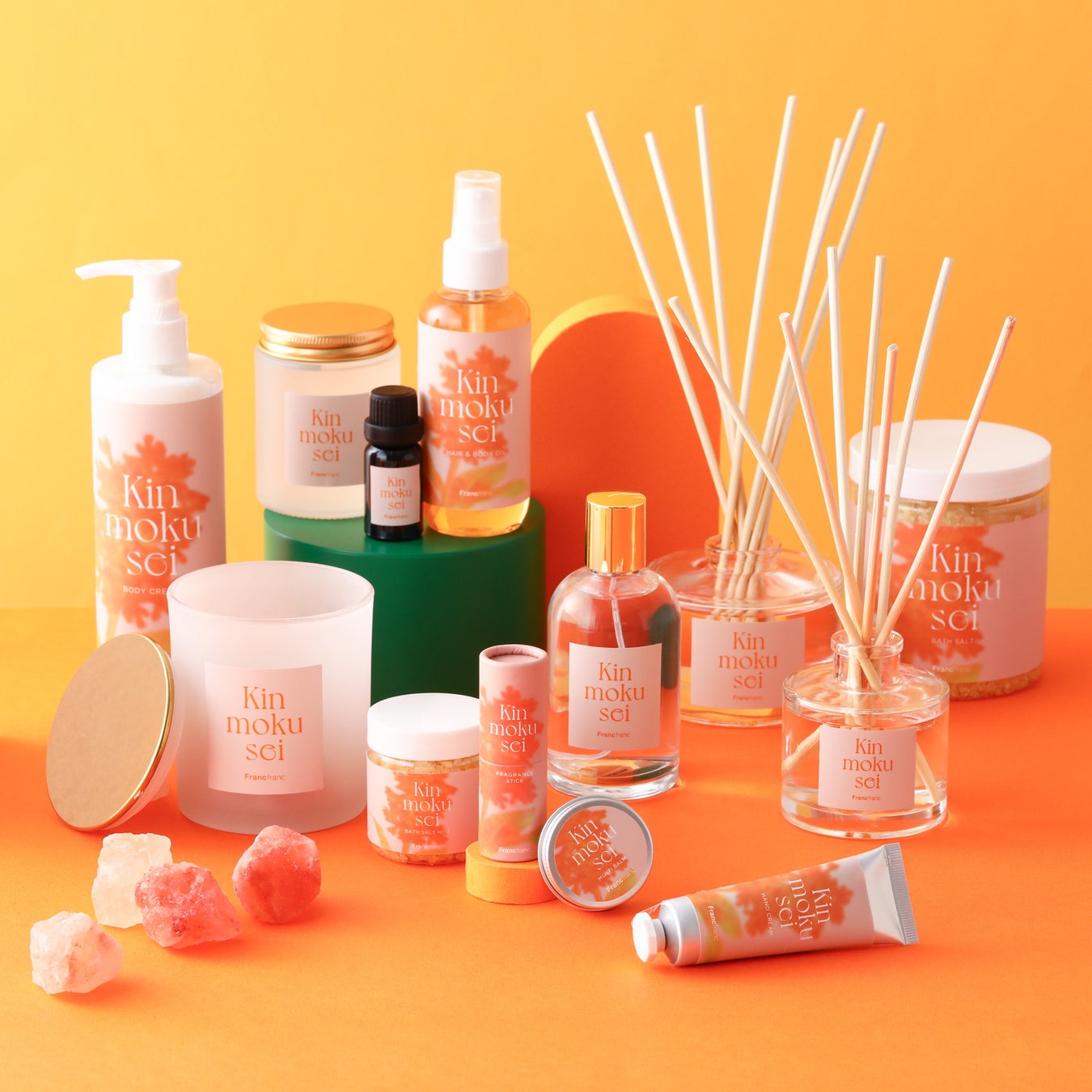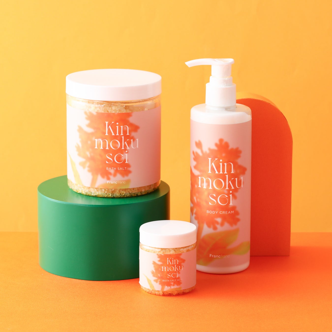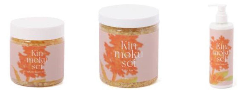 秋を感じる甘い「キンモクセイ」の香りをイメージしたバスソルトとボディクリームです。バスソルトは季節に合わせて気軽にお楽しみいただけるよう、容量約2~3回分のミニサイズもラインアップしました。ボディクリームは「キンモクセイ」の甘い芳醇な香りを全身でお楽しみいただけます。