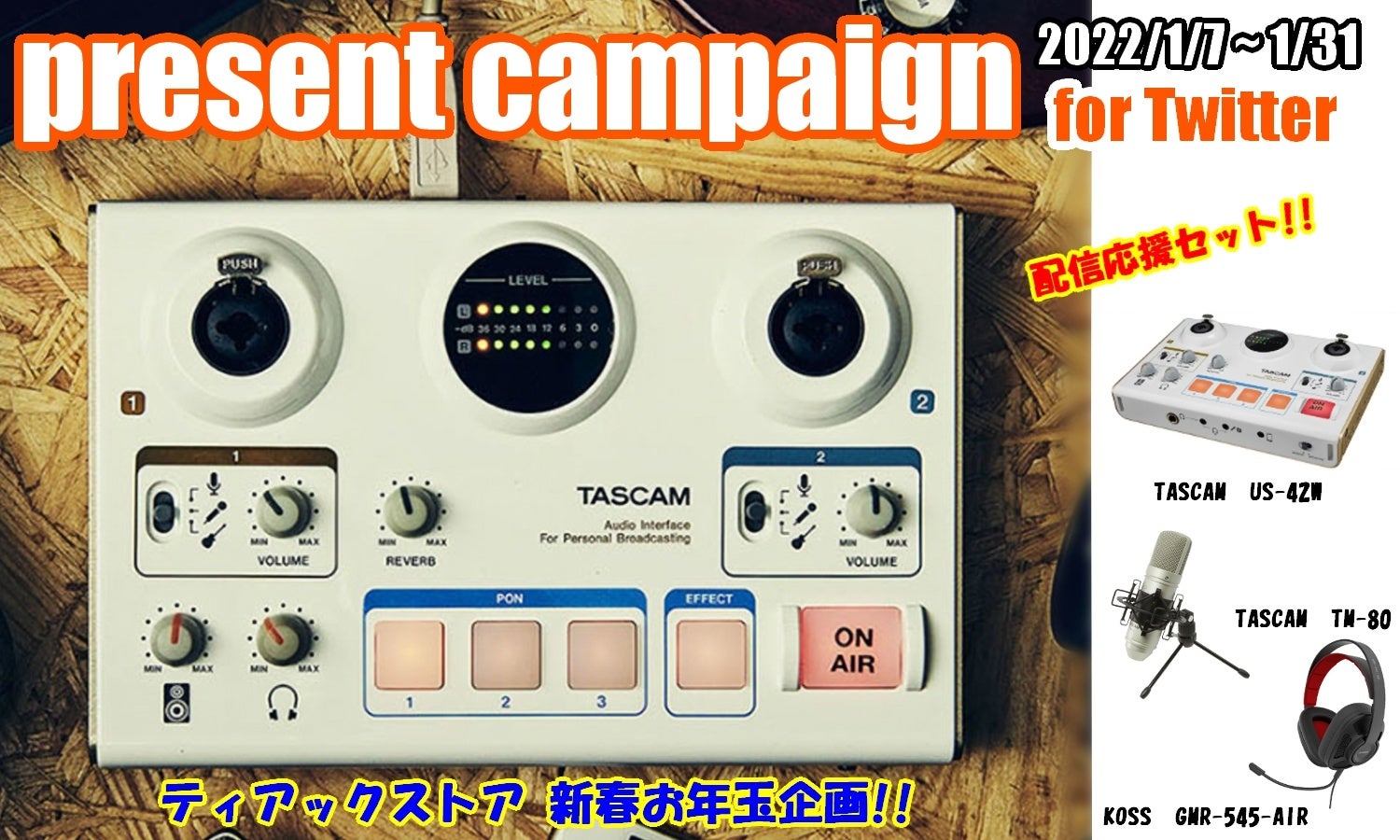 - twitter:配信活動応援セット(TASCAM US-42W、TM-80、KOSS GMR-545-AIR) 1名様