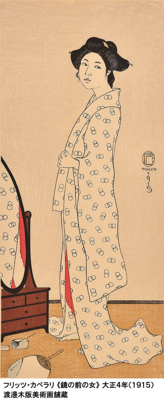 新版画誕生のきっかけとなった外国人作家フリッツ・カペラリ、チャールズ・W・バートレットや橋口五葉の新版画草創期の作品のほか、伊東深水の「近江八景」シリーズなど、初期の新版画作品をご覧いただきます。