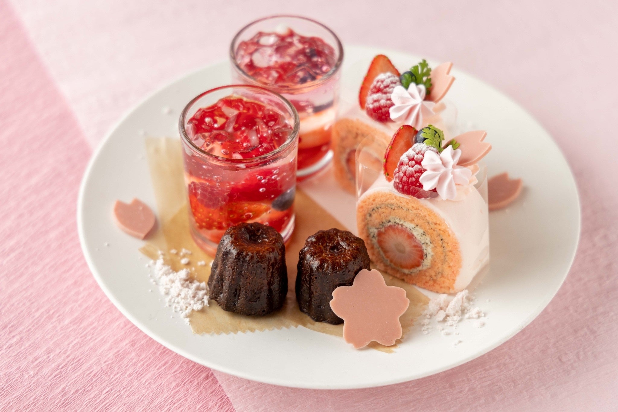 専属パティシエ高橋里沙によるダージリンと桜の絶妙な組み合わせを楽しめるスイーツをご提供。苺とダージリンのロールケーキ、桜のボンボンショコラなど、春の息吹を感じるスイーツが3段スタンドで登場します。