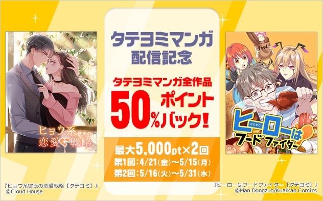 また、配信を記念して、タテヨミマンガ全作品を対象にしたポイントバックキャンペーンを、本日より開始いたします。