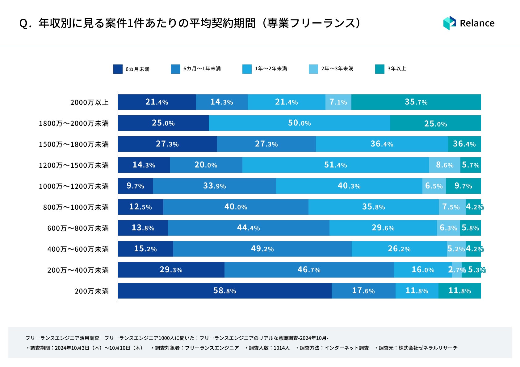 ~年収別に見る案件1件あたりの平均契約期間(専業フリーランスのみ回答)~