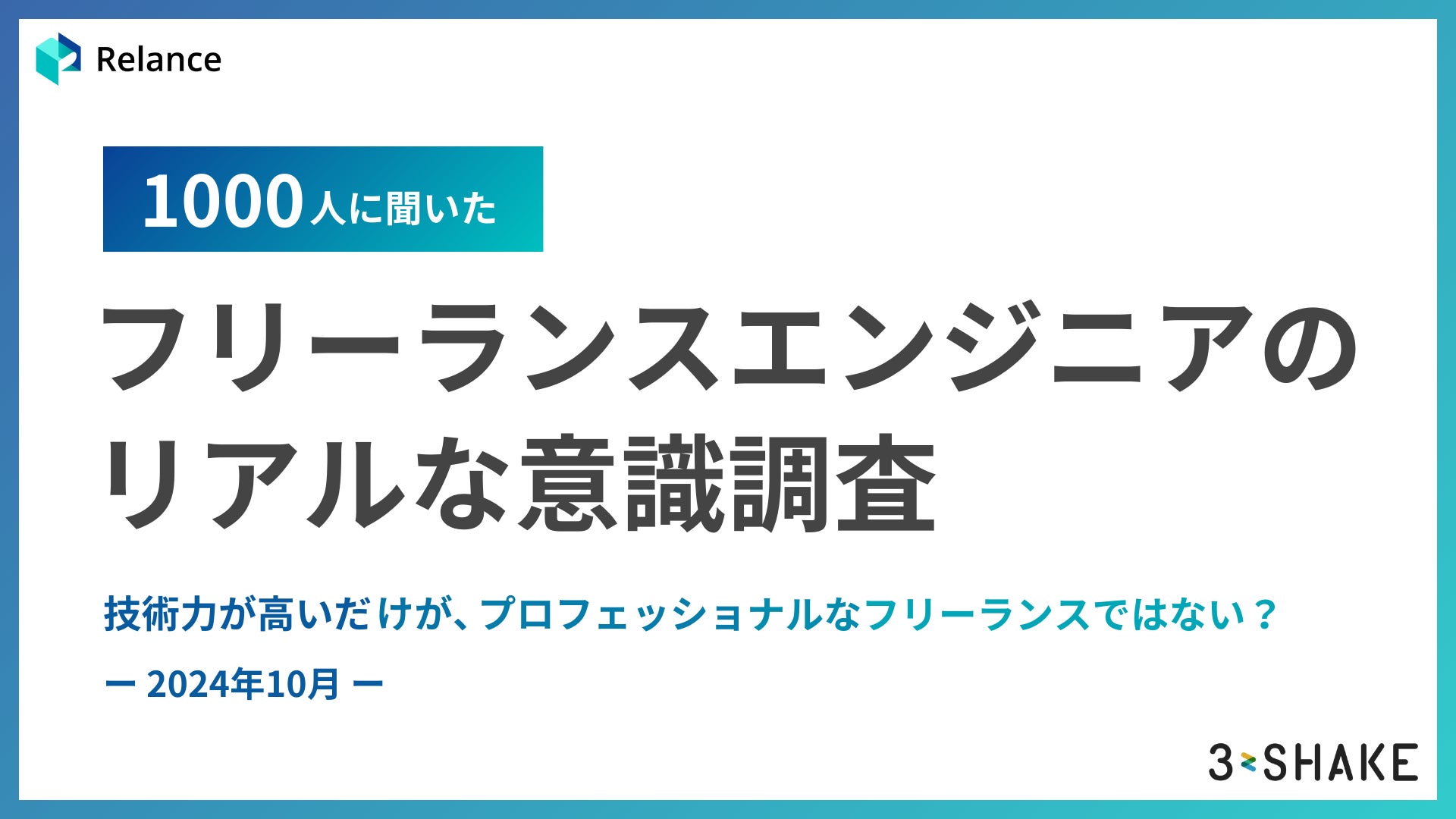 フリーランスのITエンジニア向け案件紹介サービス「Relance(リランス)」を運営する、株式会社スリーシェイク(本社:東京都新宿区、代表取締役社長:吉田 拓真、以下スリーシェイク)は、フリーランスエンジニア約1,000名を対象に、プロフェッショナルなフリーランスに対する考え方、即レスや報連相に対する意識などについて調査を行いました。