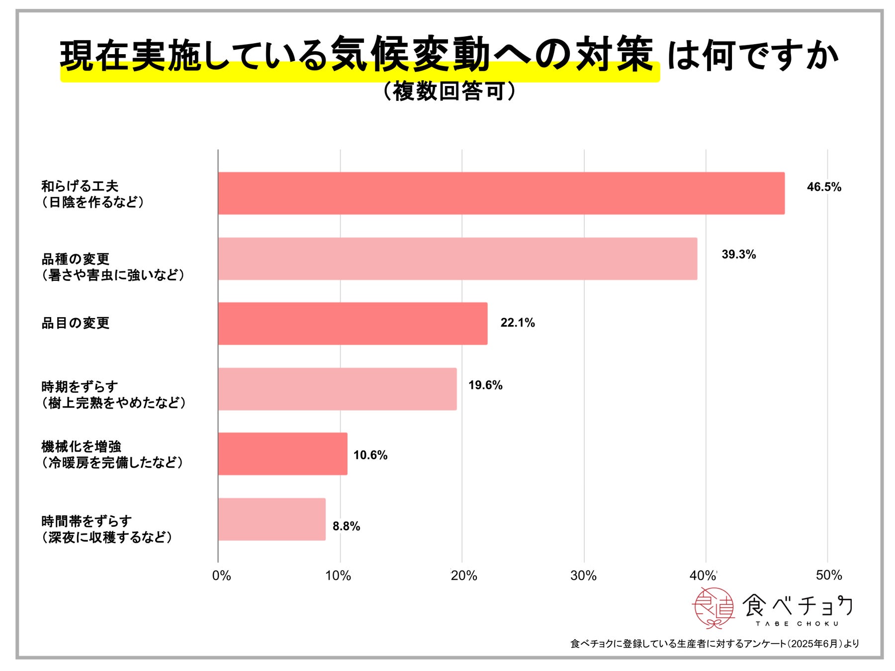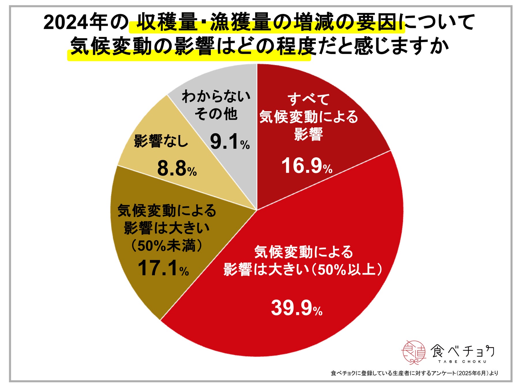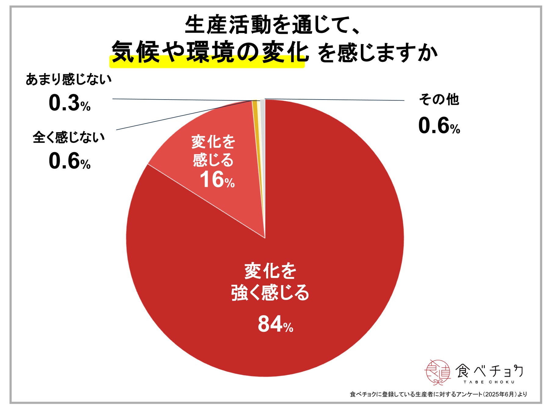 そこで食べチョクは、気候変動により生産現場が受けている打撃と、各生産者の対策を把握するため、緊急アンケート調査を行いました。