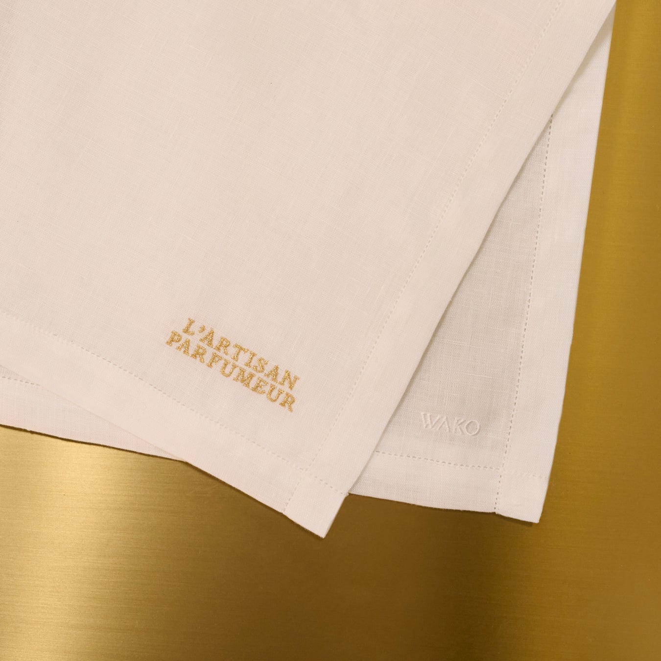 香水をご購入いただいた方には、ラルチザン パフューマーのオリジナル刺繍が入った和光のハンカチーフをプレゼントいたします。