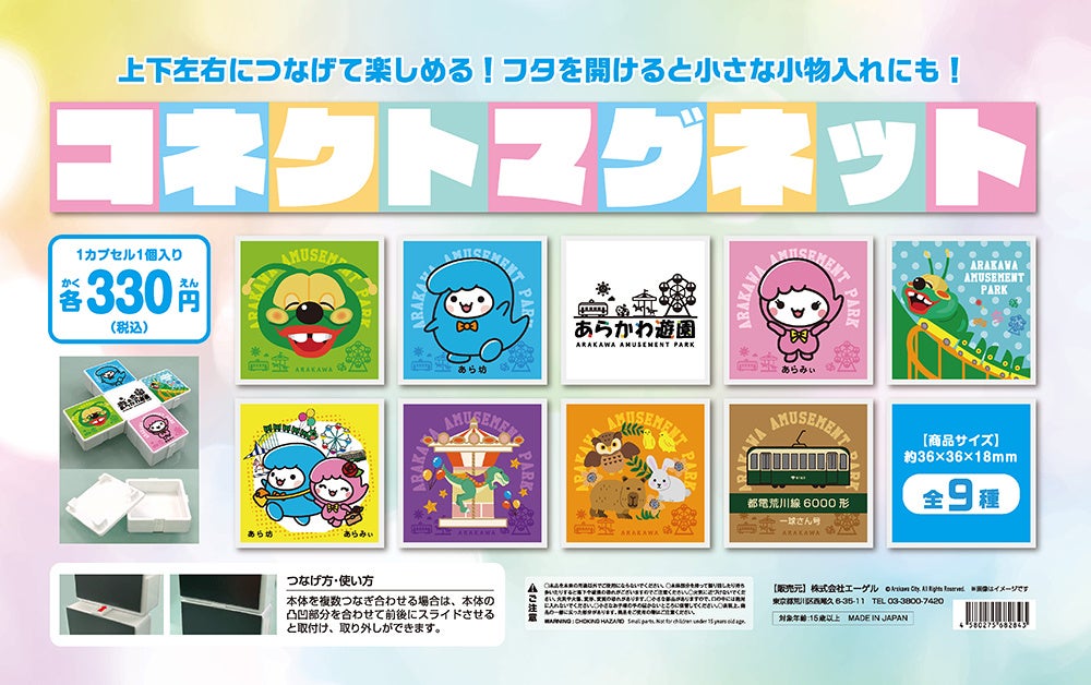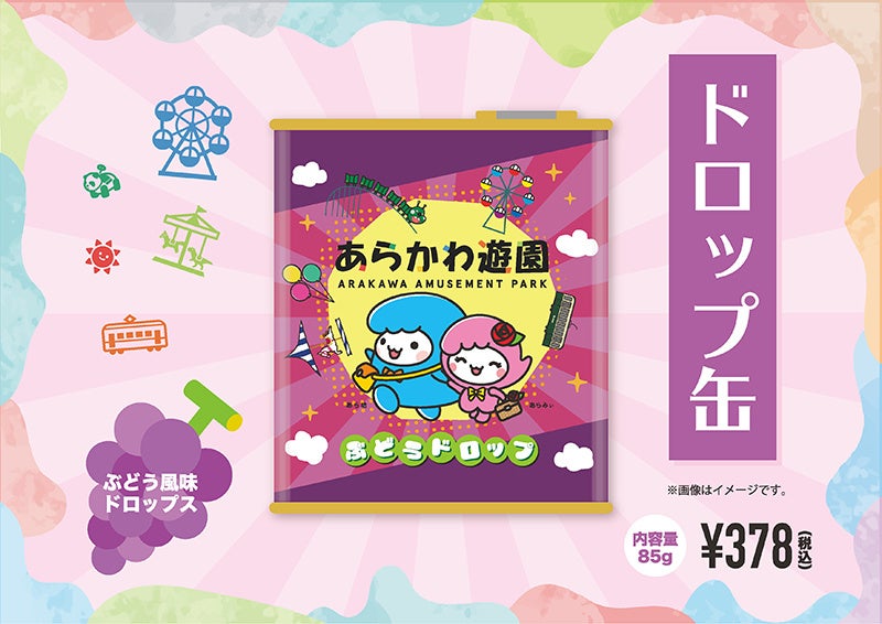オリジナル商品の開発・販売にあたっては、遊園内飲食店を運営する株式会社エーゲル(京都市右京区)とコラボ。バラエティ豊かで楽しいお菓子やグッズで、あらかわ遊園の想い出づくりをお手伝いします。