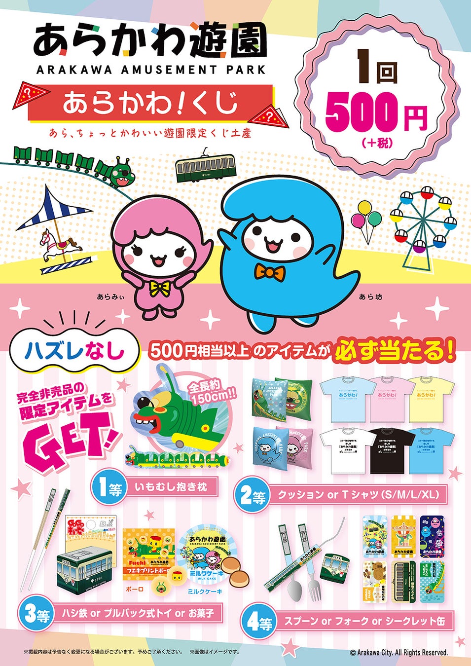 リニューアルオープンに先駆け17日行われた内覧会でも大好評だった、あらかわ遊園オリジナルアイテムがGETできる「あらかわ!くじ」にもご注目ください!