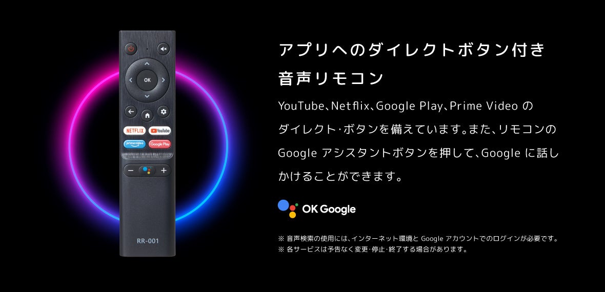 ※Google、Google Play、Android TV、Chromecast built-in、およびその他のマークは Google LLC の商標です。