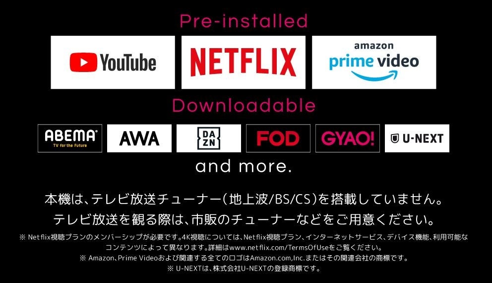 ※Netflixの視聴にはメンバーシップが必要です。4K視聴については、Netflix視聴プラン、インターネットサービス、デバイス機能、利用可能なコンテンツによって異なります。詳細は www.netflix.com/TermsOfUse をご覧ください。