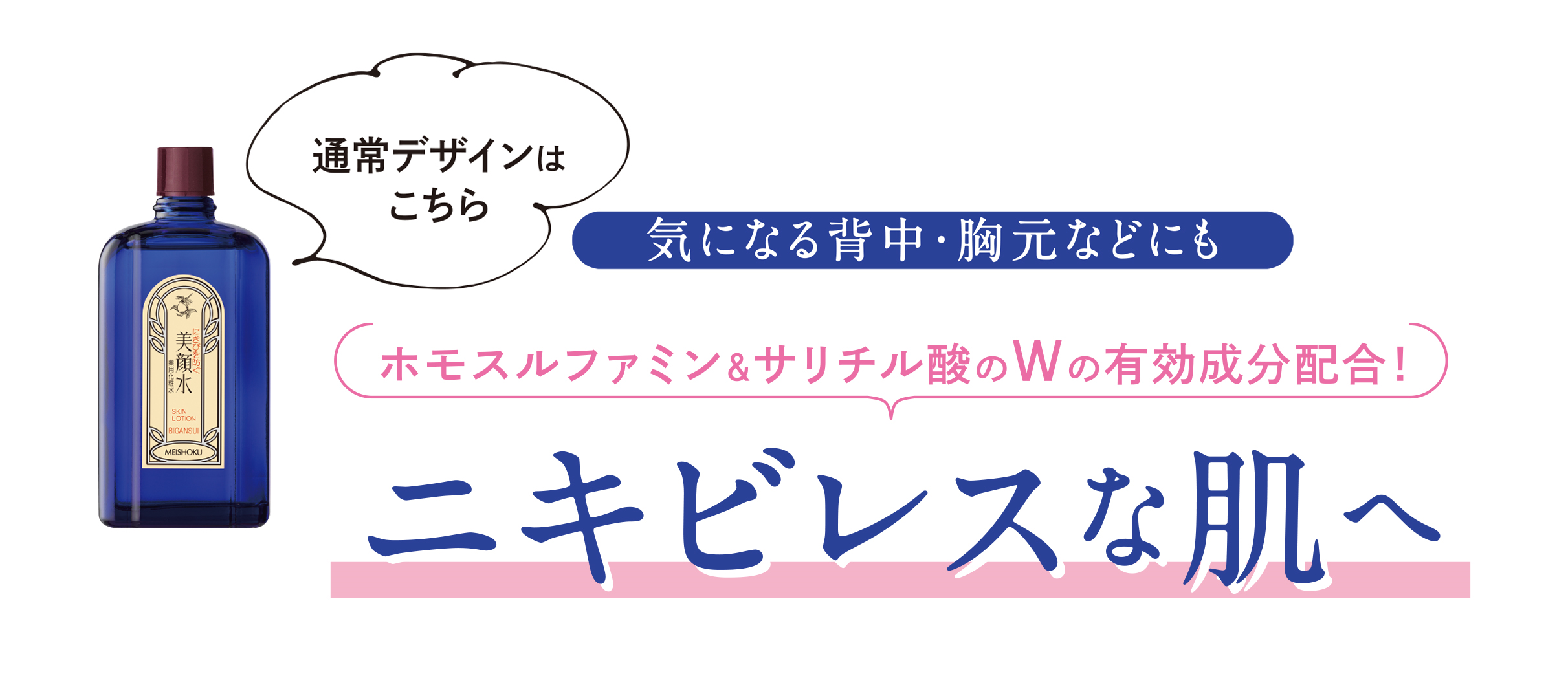 W配合の薬用有効成分(サリチル酸とホモスルファミン)の効果でニキビをケア。
