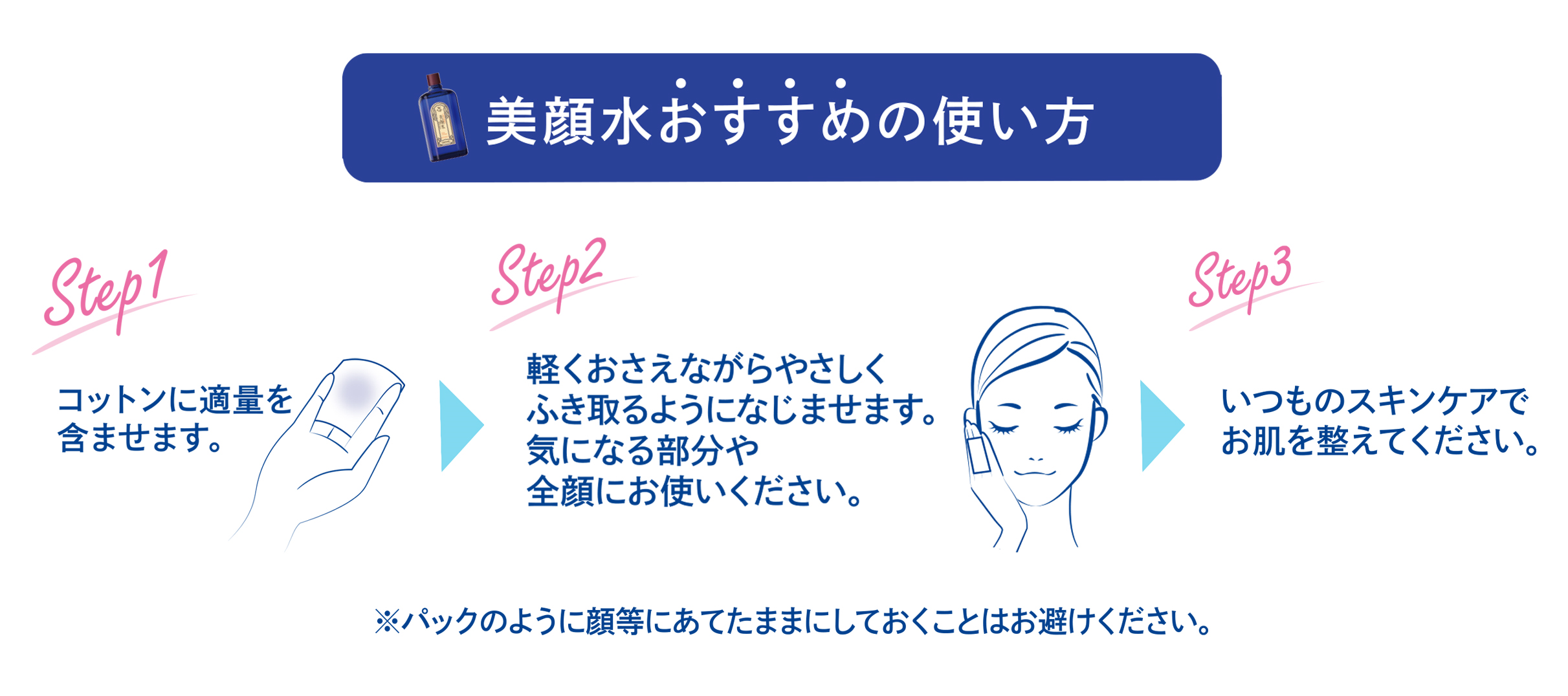 その際、パックのように顔等にあてたままにすることはお避けください。