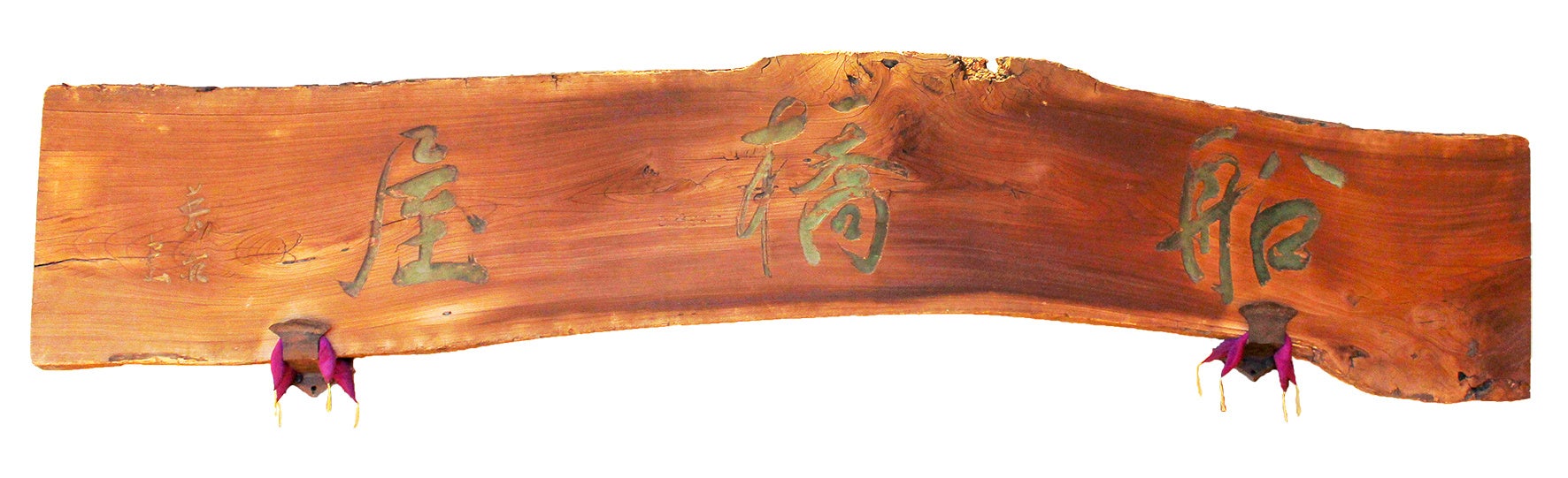 左記の画像が吉川英治にご揮毫いただいた看板文字です。現在は船橋屋 亀戸天神前本店の喫茶室に掲げられています。「看板は大事なものだから、書初に書きましょう」と言って船橋屋の看板文字
