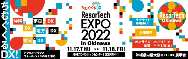 「ResorTech EXPO 2022 in Okinawa」は、ビジネスマッチングを通した連携・共創の創出や、沖縄県のDX推進などを⽬的としており、今年は沖縄の⾔葉で”⼼の優しさや豊かさ”を意味する「ちむぐくる」をテーマとし、2日間の来場者数は約9,000人を見込んでいます。