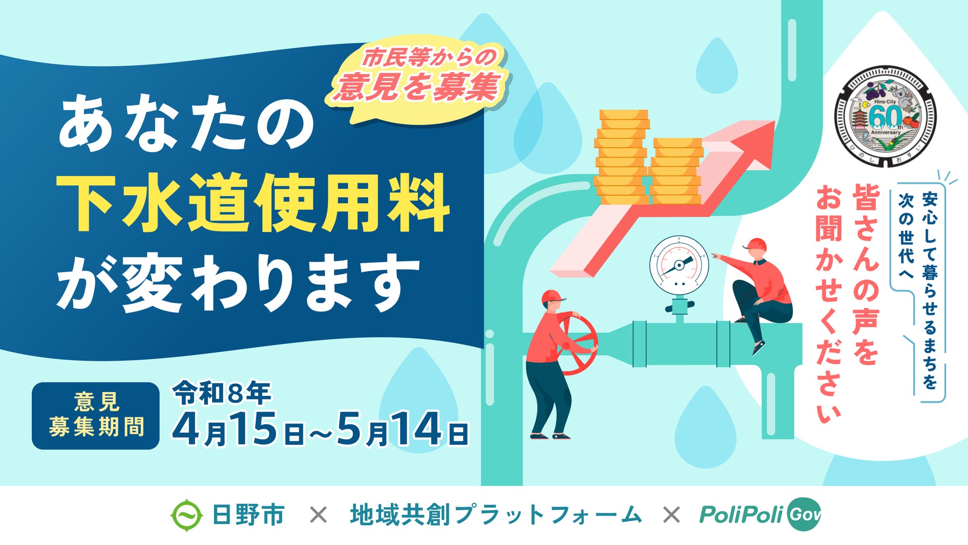 【日野市×PoliPoli Gov】下水道使用料の見直しに関する意見募集を開始