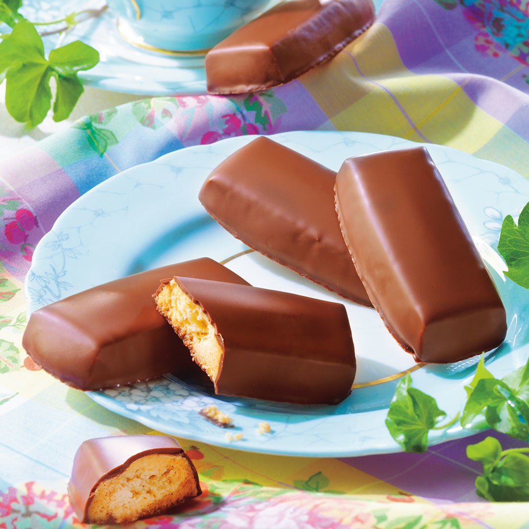 紅茶との相性が抜群とされる、スコットランド伝統の焼き菓子「ショートブレッド」をロイズのレシピでアレンジしました。バターの香りが広がる、サクサクとかろやかな食感の生地を、すっきりとした甘さのチョコレートでコーティングしています。