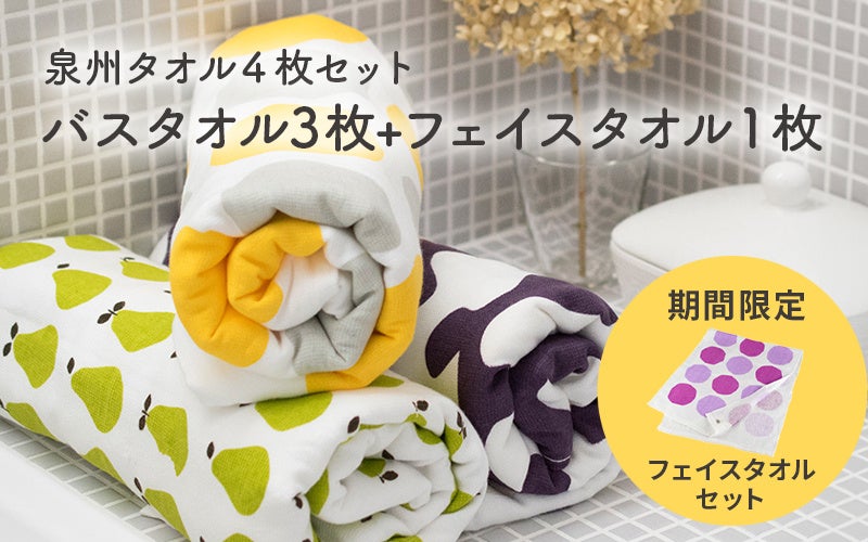 泉州タオル ガーゼタッチバスタオル3枚+フェイスタオル1枚セット