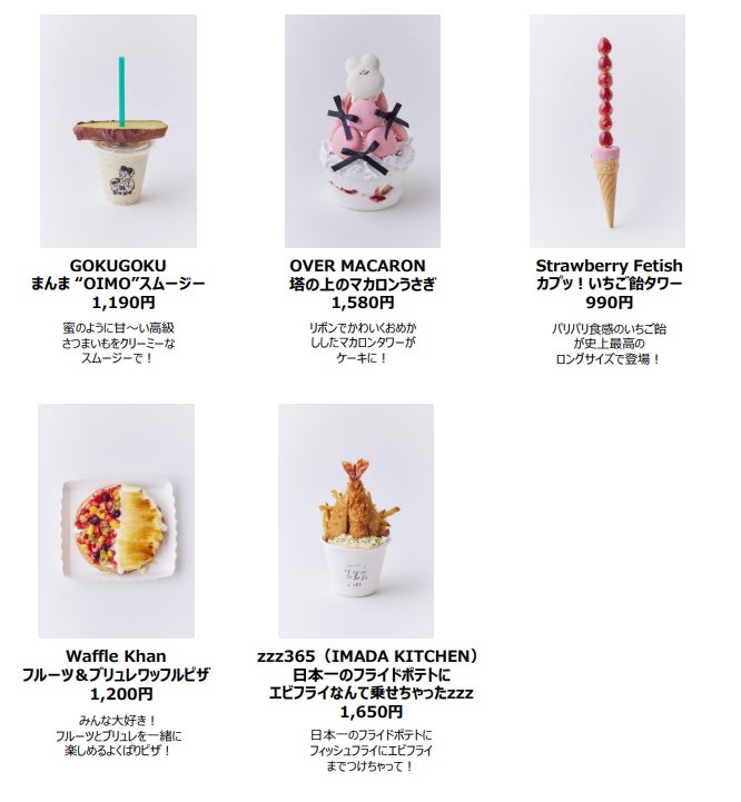 SHIBUYA109渋谷店地下2階「MOG MOG STAND」一部店舗にて、ここでしか食べられない、フードインフルエンサー「ス イーツ王子・いでくん」とのオリジナルコラボ「BAKU盛」メニュー(全5種)を販売いたします。おひとり様・お友達・ご家族のみなさまなど、是非、写真を撮りながらお食事をお楽しみください。