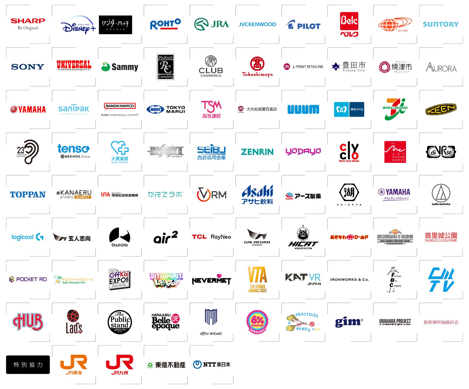 シャープ株式会社/ディズニープラス「ワンダーハッチ -空飛ぶ竜の島-」/ロート製薬株式会社/日本中央競馬会(JRA)/株式会社JVCケンウッド/株式会社パイロットコーポレーション/株式会社ベルク/株式会社ビームス/サントリー株式会社/ソニー株式会社/株式会社ユニバーサルエンターテインメント/サミー株式会社/株式会社Robot Consulting/株式会社クラブコスメチックス/株式会社髙島屋/J.フロント リテイリング株式会社/愛知県豊田市/静岡県焼津市/オーロラ株式会社/ヤマハ発動機株式会社/日本サニパック株式会社/株式会社バンダイナムコミュージックライブ/株式会社東京マルイ/SO.ON project LaV 東京スクールオブミュージック&ダンス専門学校 高等課程/株式会社大丸松坂屋百貨店/UUUM株式会社/東京地下鉄株式会社/株式会社セブン&アイ・ホールディングス/キーン・ジャパン合同会社/株式会社ニッポン放送『ラジオ・チャリティ・ミュージックソン』/tenso株式会社/株式会社 大賀薬局/聖飢魔Ⅱ/渋谷税務署/西武信用金庫/株式会社ゼンリン/YoDayo AI / Syr Corp/合同会社クリクロ/アークシステムワークス株式会社/株式会社diVRse/TOPPAN株式会社/かなプロマーケット/独立行政法人情報処理推進機構/かえでラボ/一般社団法人VRMコンソーシアム/アサヒ飲料株式会社/アース製薬株式会社/株式会社湖池屋/ヤマハ株式会社/株式会社オーディオテクニカ/Logicool G/玄人志向/Bauhutte(バウヒュッテ)/Xreal(Nreal)/TCL RayNeo/GALAKURO GAMING/HICAT/おきなわワールド文化王国・玉泉洞/那覇市国際通り商店街/首里城公園/株式会社PocketRD/株式会社名護パイン園/OffKai Expo/BitSummit/Nevermet©/Mythic Talent/株式会社EG/有限会社アイアンワークス/株式会社FBC/株式会社サイバーメディアTV/株式会社ハブ/Lad's Garage 渋谷店/株式会社セクションエイト/株式会社オフィス・ミツキ/ベルエポック美容専門学校/6%DOKIDOKI/アプラクティスド ハンド/株式会社ジム/#ウラハラプロジェクト/原宿神宮前商店会